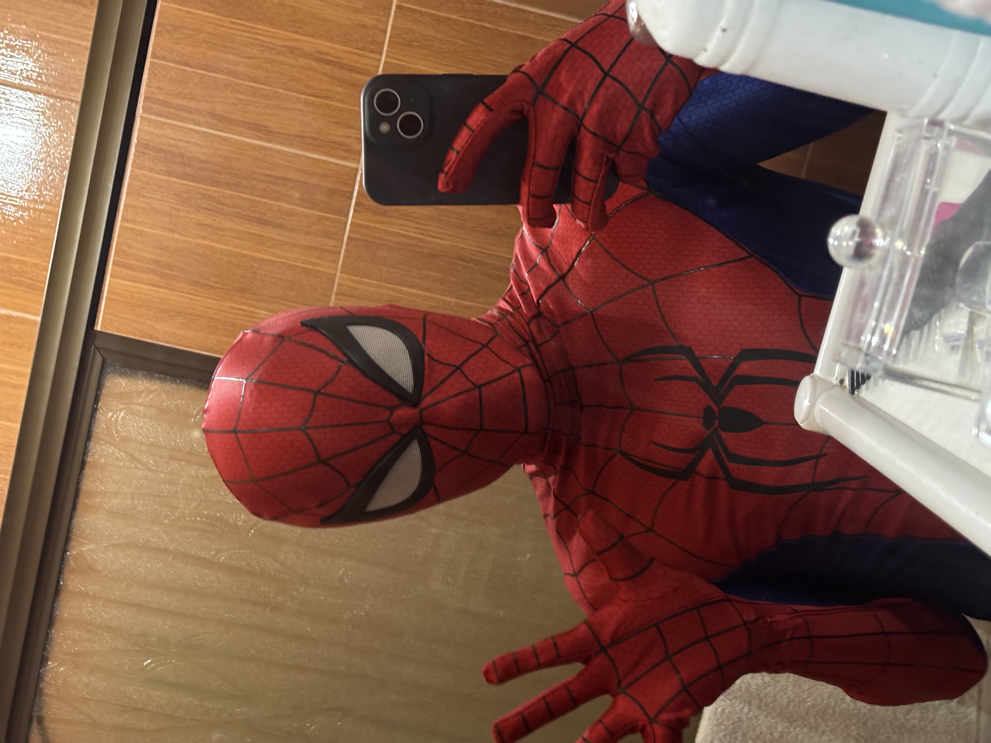 Nice print, but mediocre quality, the back spider has sharpie on it from when the fabric was cut, the measurements were off, the arms were tight and the palm is about to tear, there are bubbles in u zipper, everything else is fine though